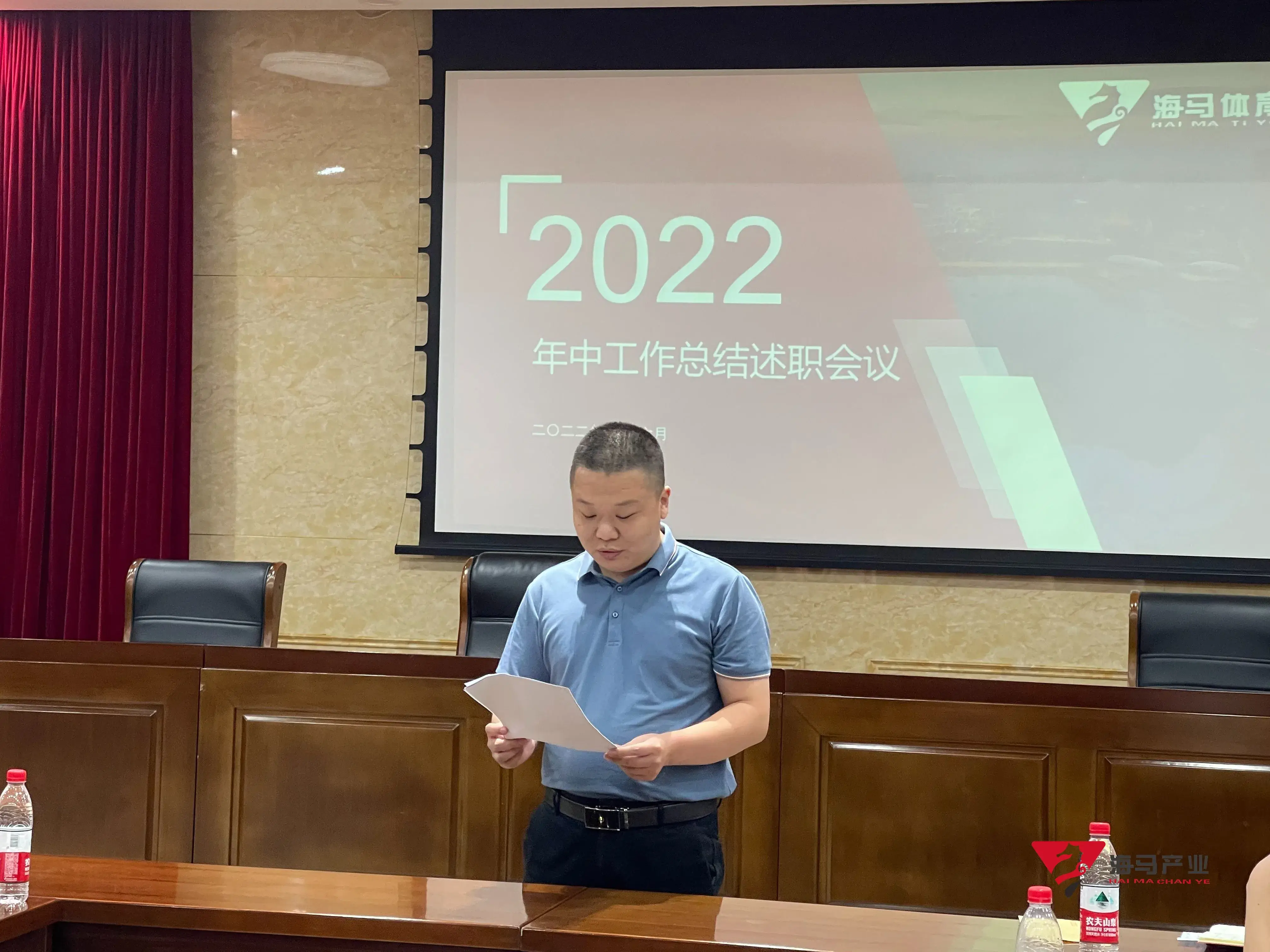 2022年6月29日下午,长征娱乐文化产业集团在山东省体育中心二楼会议室召开年中工作总结述职会议,会议对上半年工作成果进行了总结汇报,并就下半年重点工作进行部署。总经理王海民出席了本次会议。会议由综合管理部负责人王永健主持。